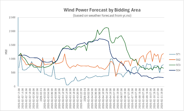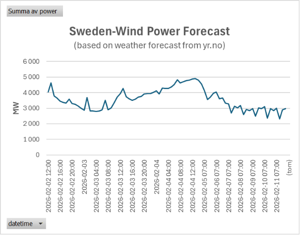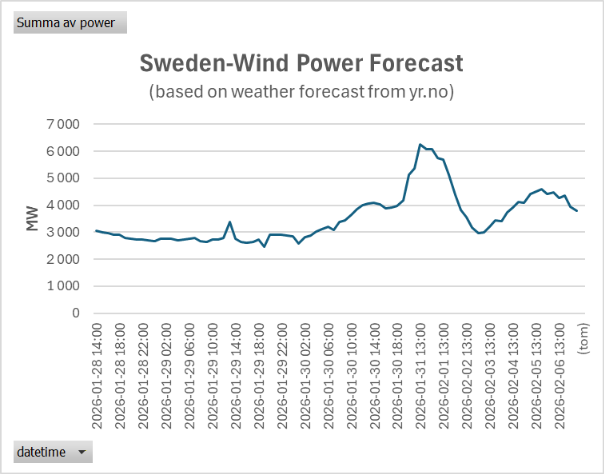 Vindstat AB tar inget ansvar för beslut och dess konsekvenser som baseras på dessa prognoser eller beräkningar. Prognoserna bygger på väderprognoser från yr.no. Se mera http://www.yr.no